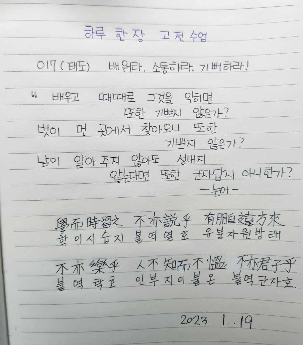 "배우고 때때로 그것을 익히면 또한 기쁘지 않은가?