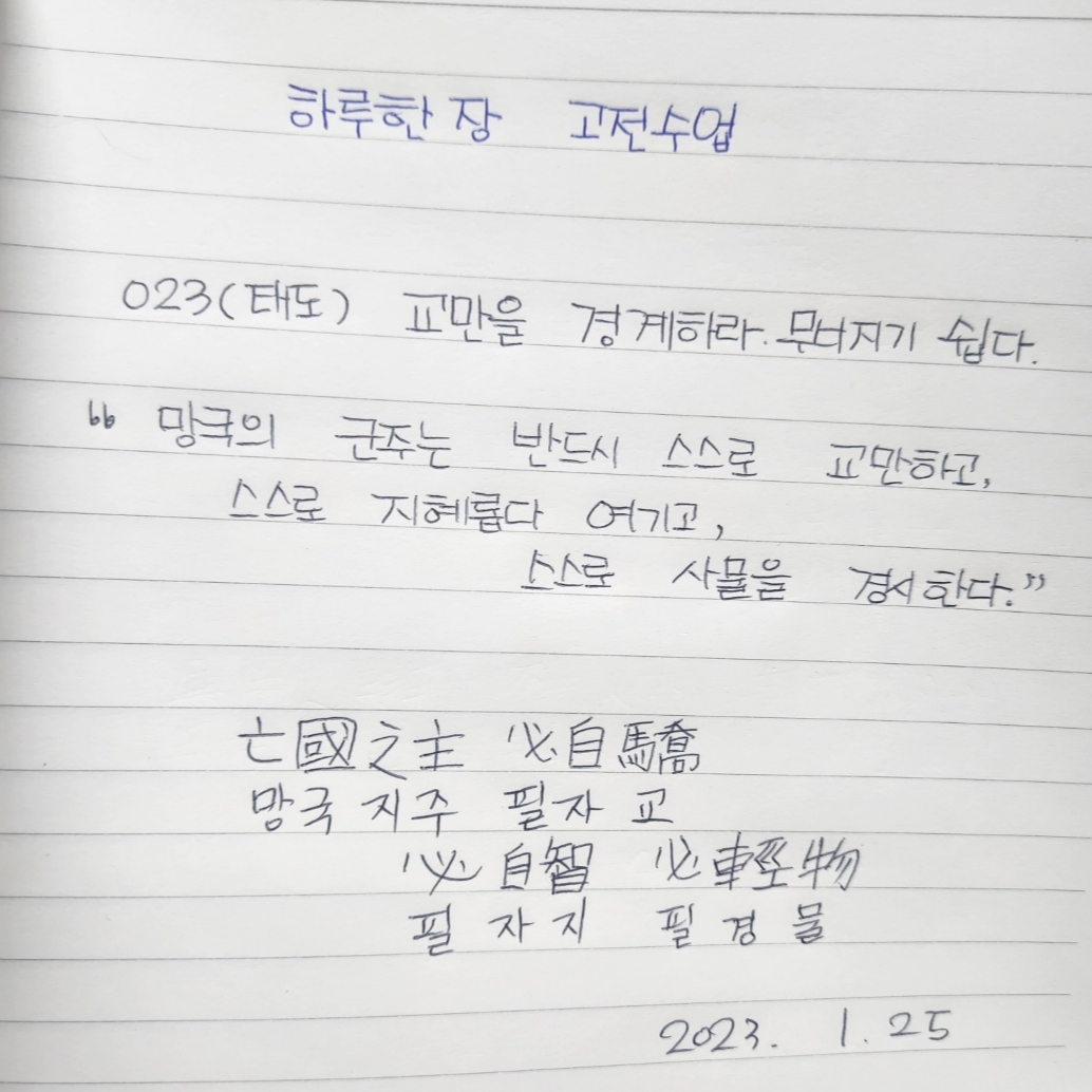 하루 한장 고전수업은 나에게 멋진 선생님이 되어 주고 있습니다. 이렇게 마음을 단단하게 해주는 수업이 또 있을까 생각합니다. 글을 적는동안 머릿속으로 생각하고 그 생각이 저의 가슴을 울려주는 이 모든것에 감사합니다.