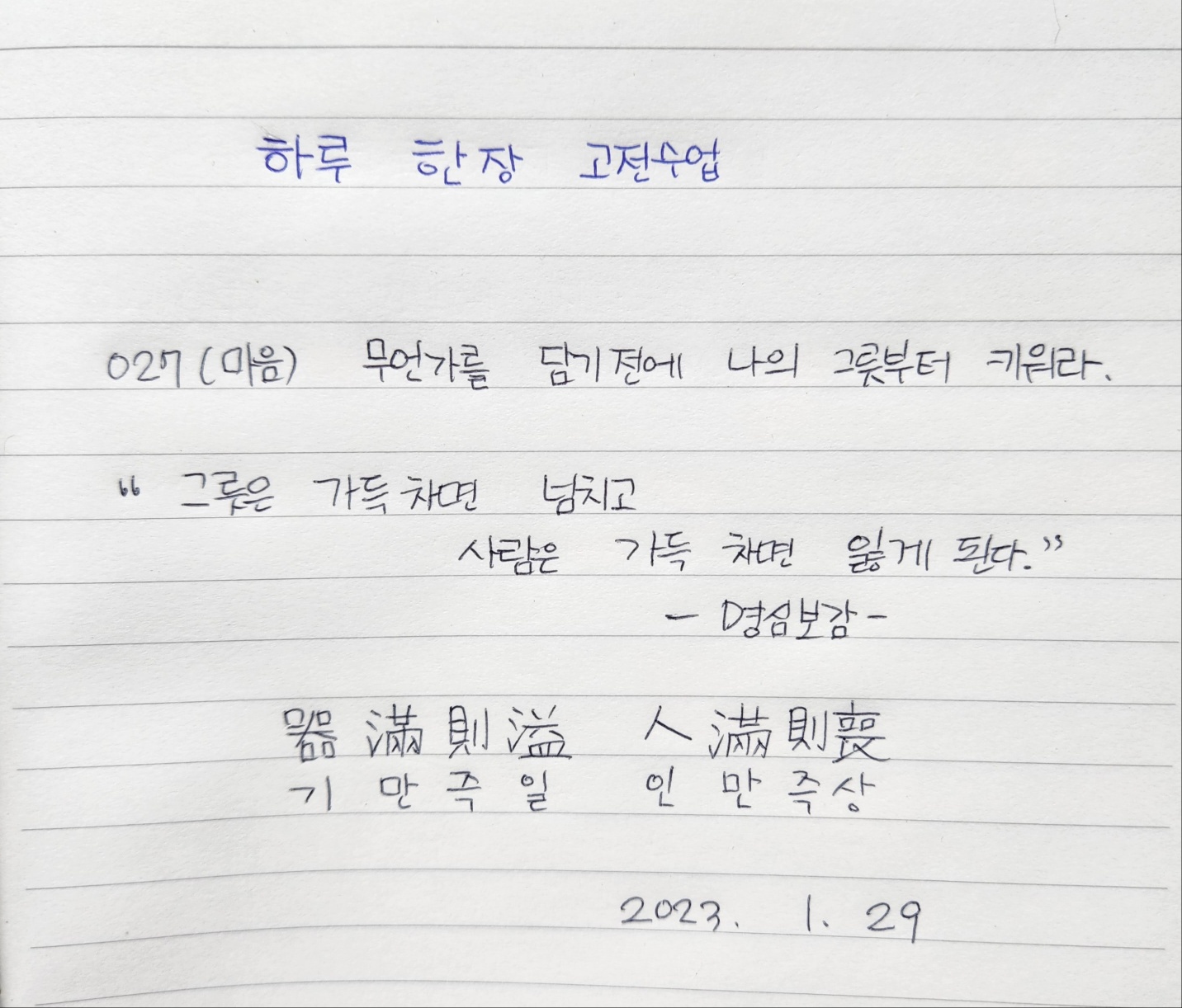 "그릇은 가득차면 넘치고 사람은 가득 차면 잃게 된다."