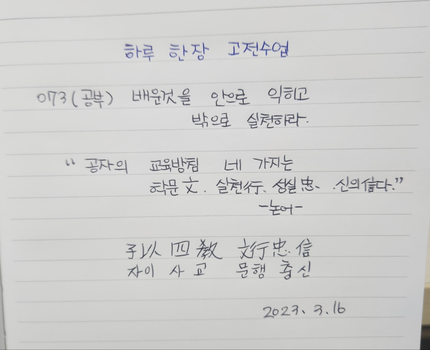 073(공부) 배운것을 안으로 익히고 밖으로 실천하라