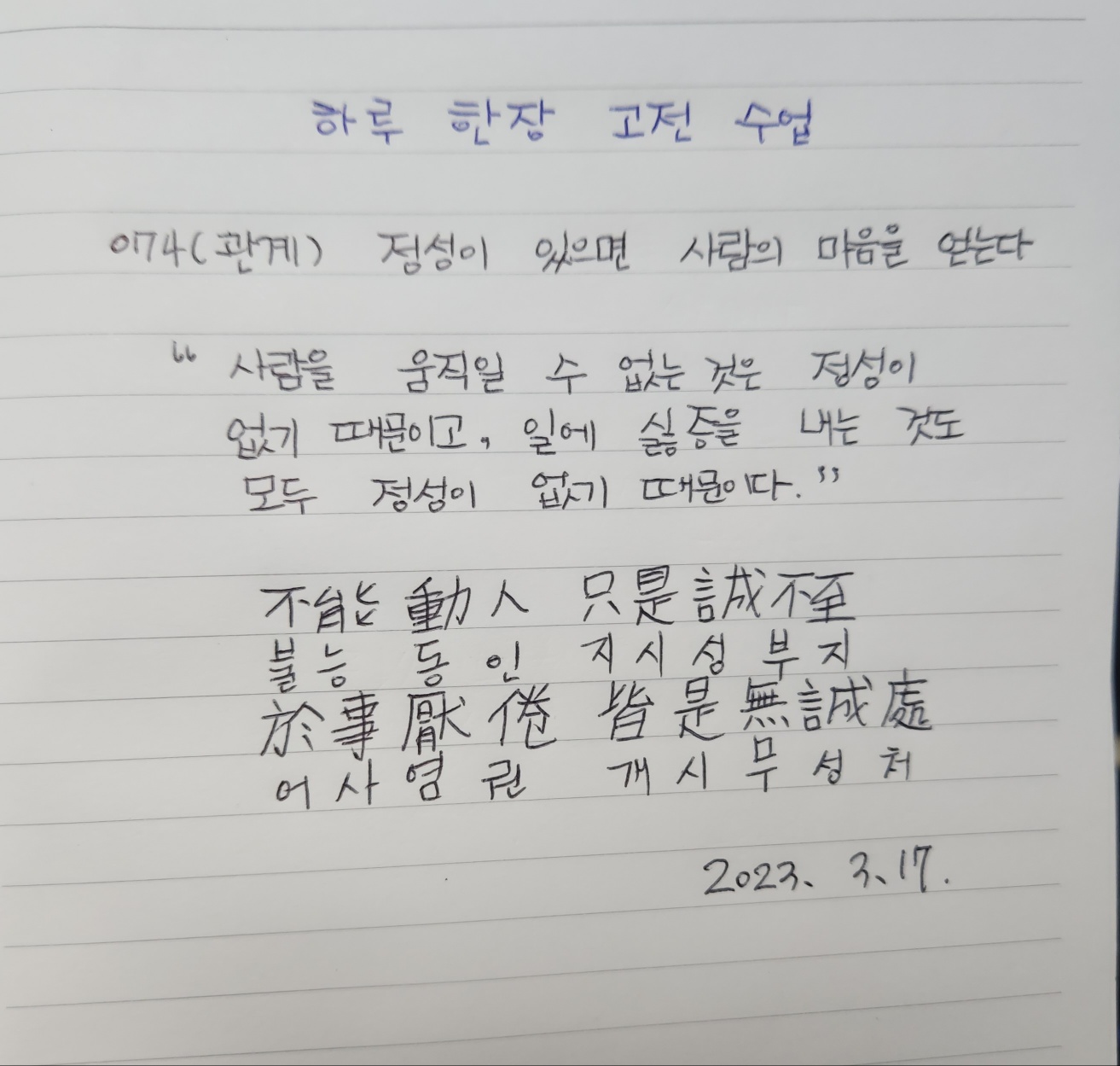 074 (관계 ) 정성이 있으면 사람의 마음을 얻는다