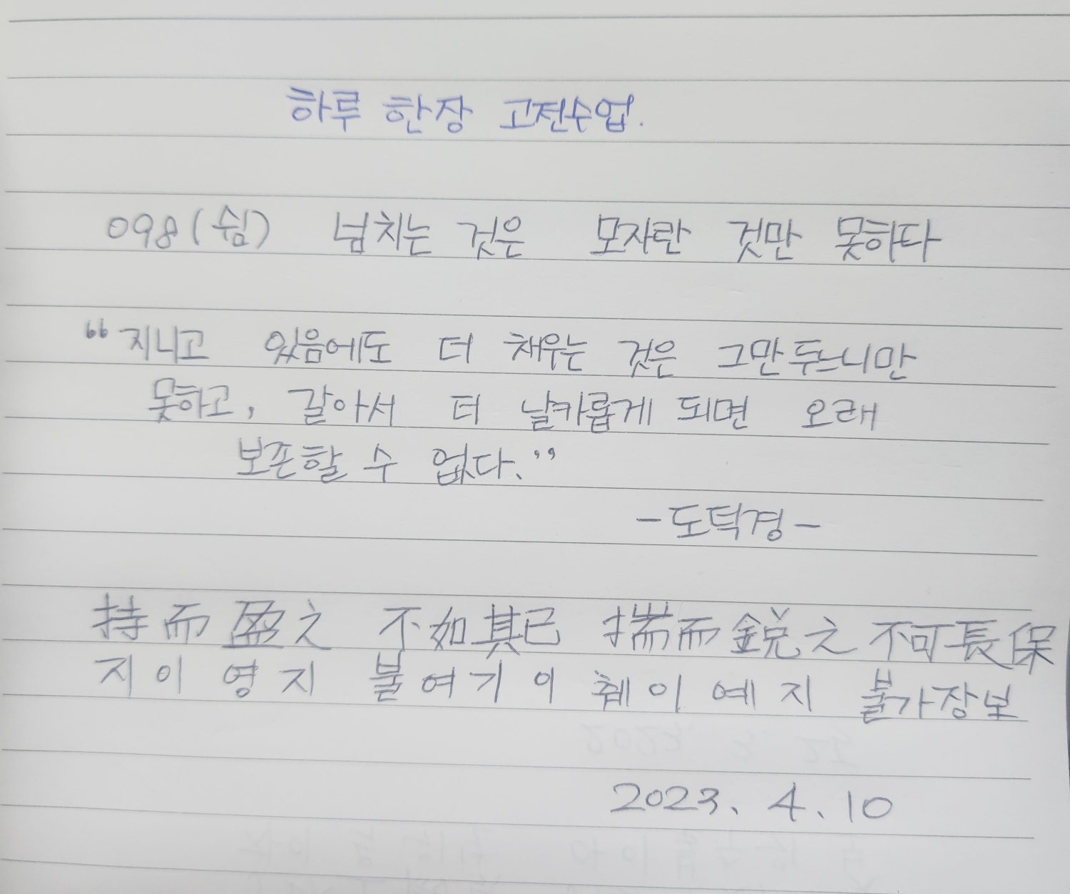 098 (쉼) 넘치는 것은 모자란 것만 못하다