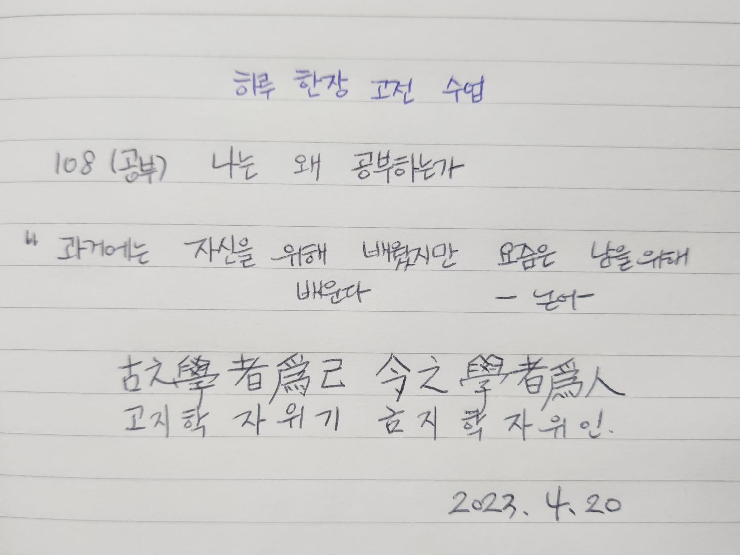 " 과거에는 자신을 위해 배웠지만 요즘은 남을 위해 배운다.- 논어-