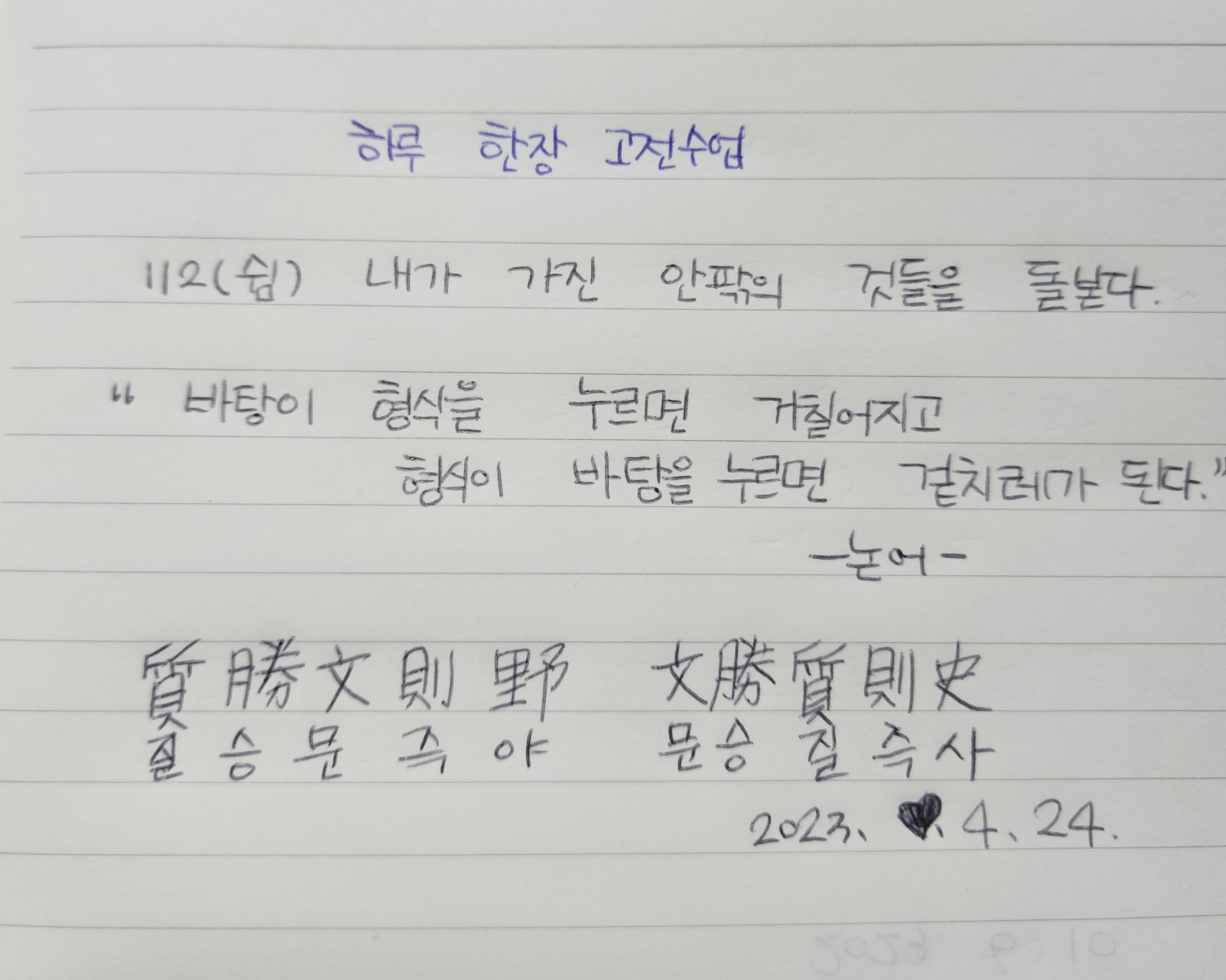 오늘 하루도 고전수업의 내용을 되새기는 하루가 되도록 하겠습니다.