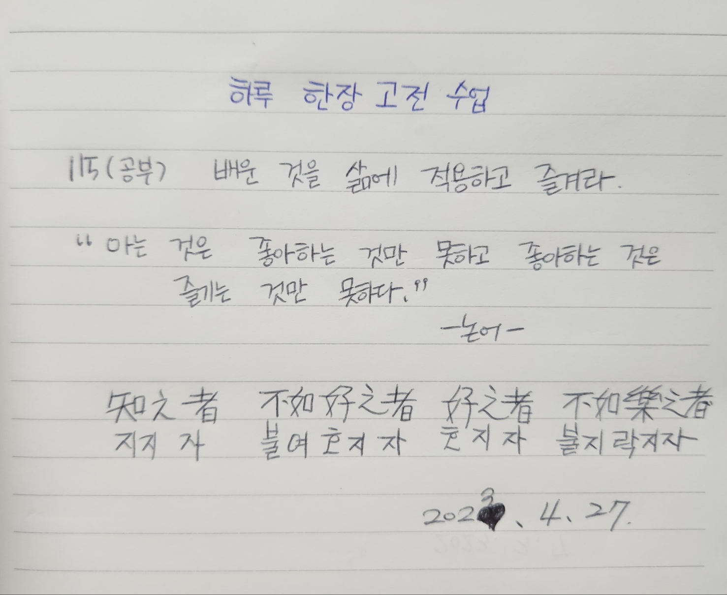 "아는 것은 좋아하는 것만 못하고 좋아하는 것은 즐기는 것만 못하다."