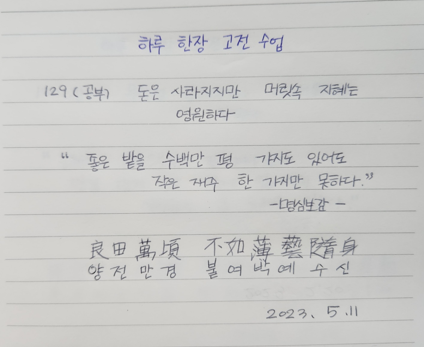 오늘도 잠시 잊고 있었던 것을 깨우치게 해준 고전수업에 감사합니다.