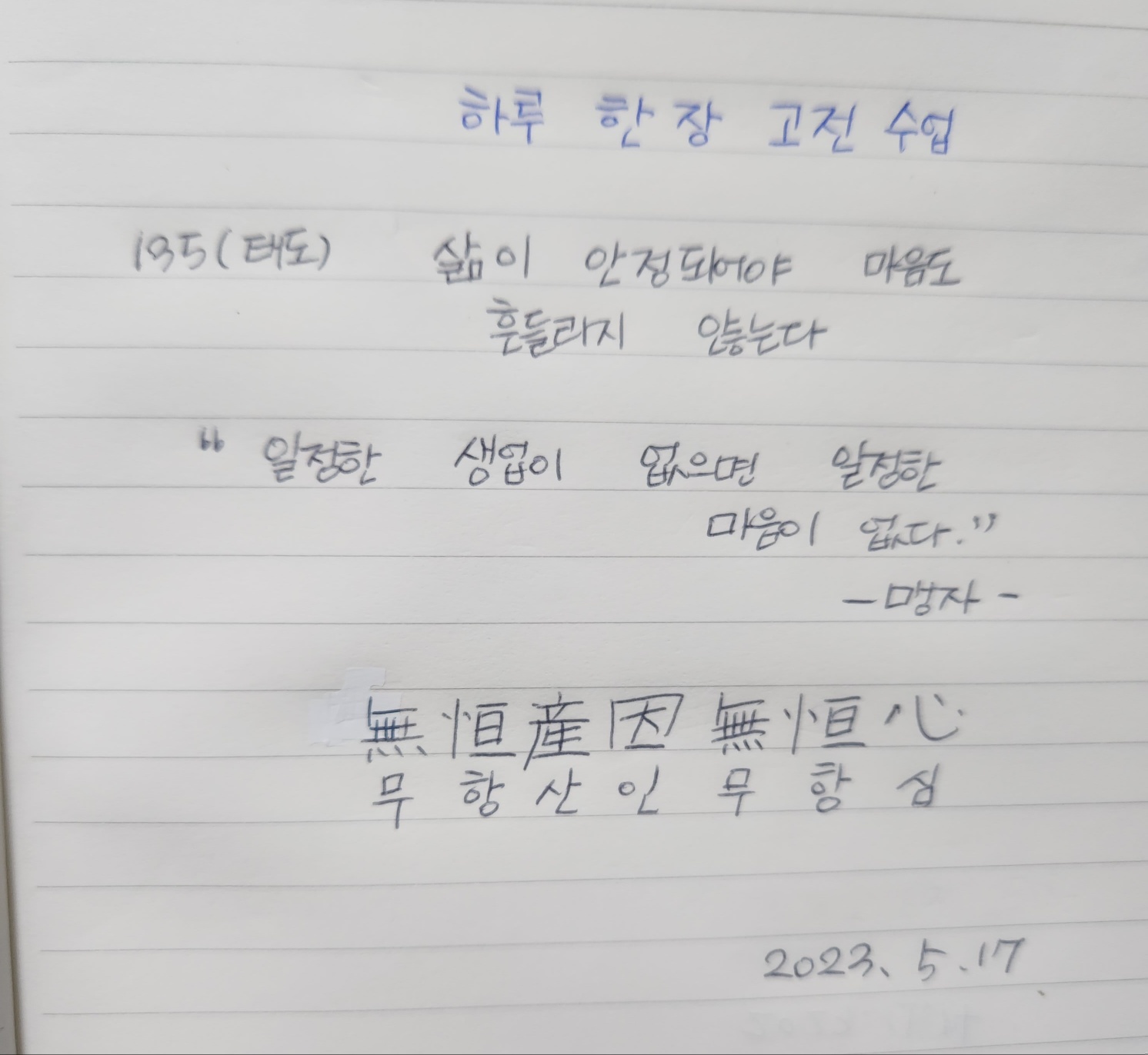 "일정한 생업이 없으면 일정한 마음이 없다."