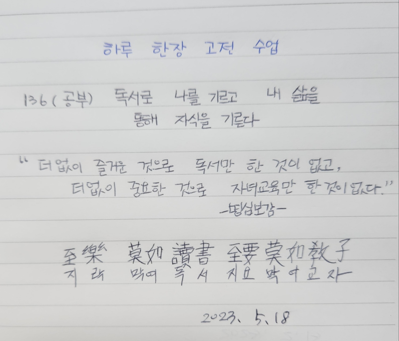 오늘도 고전수업의 시간을 되새기며 하루를 보내겠습니다.