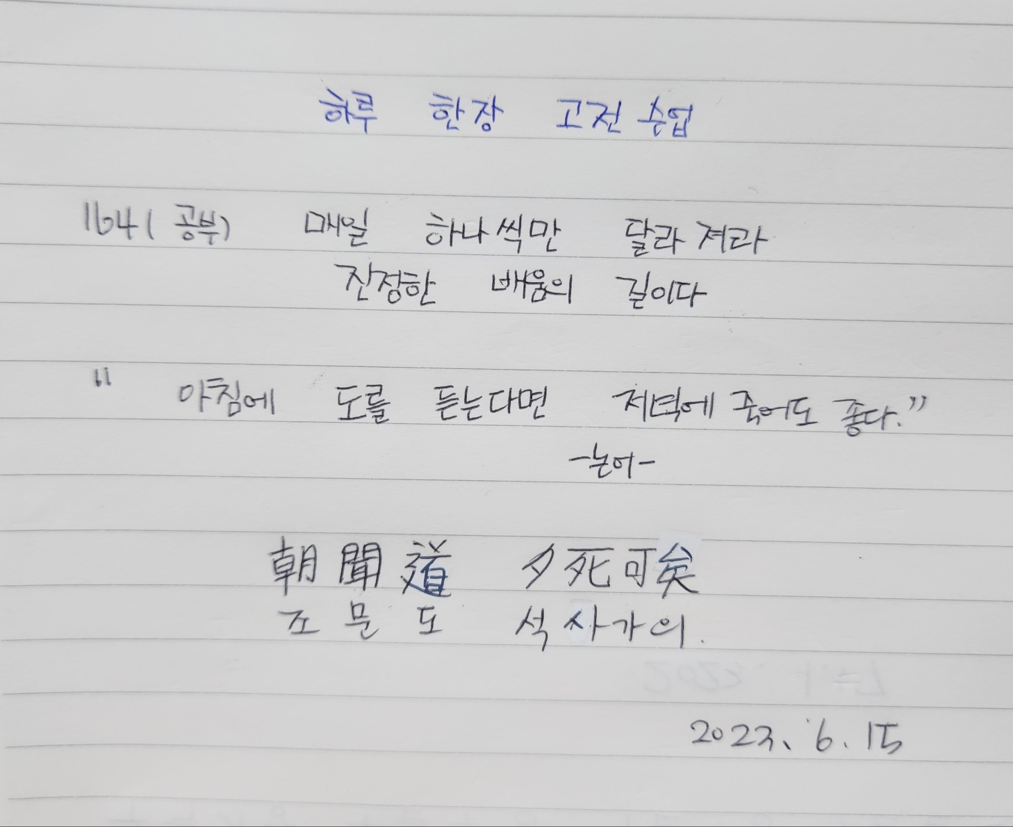 저는 매일 고전수업을 함에 있어 감사합니다. 제 자신도 매일 조금씩 변화하고 있다고 느끼고 있습니다.