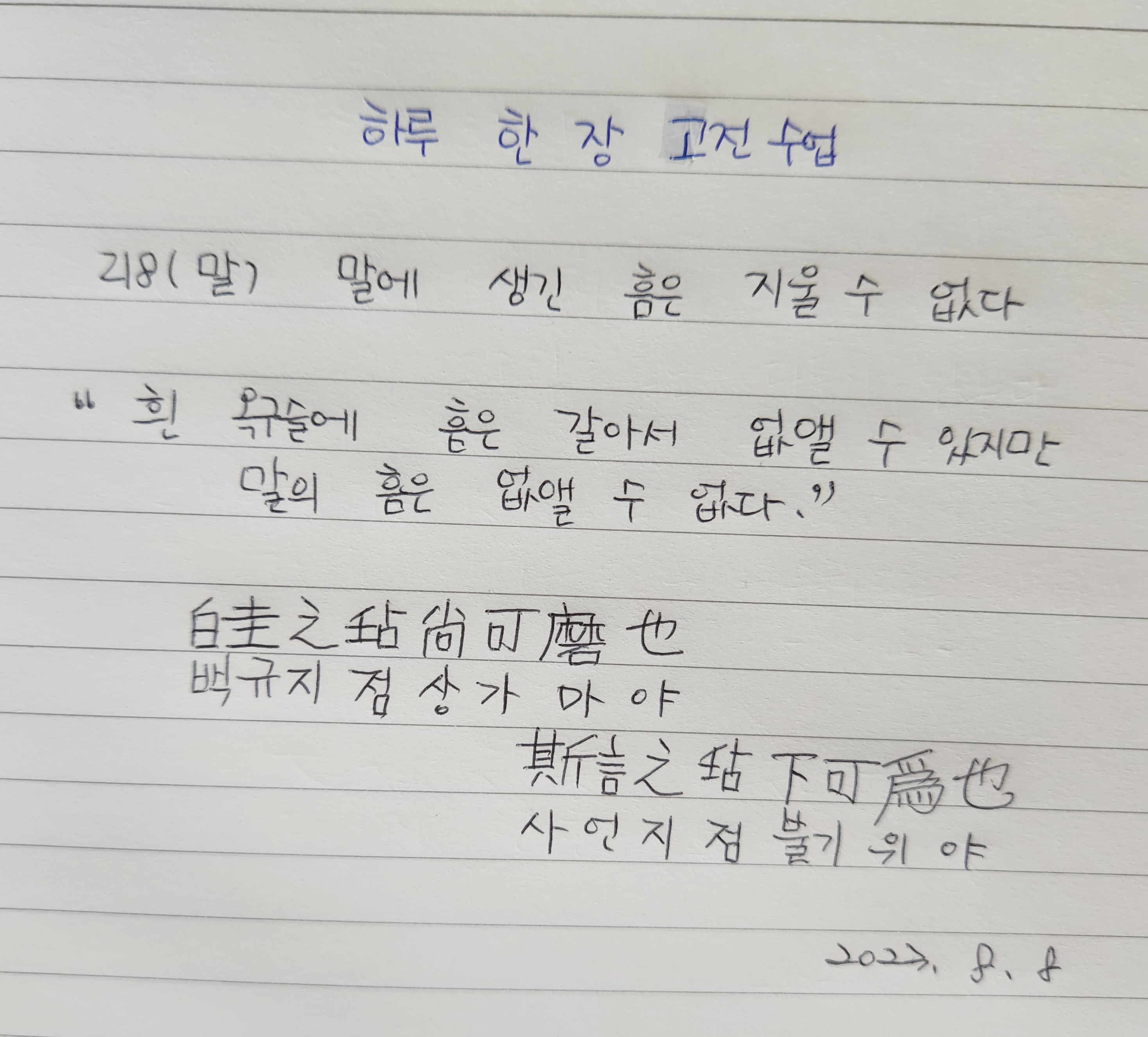 218 (말) 말에 생긴 흠은 지울 수 없다