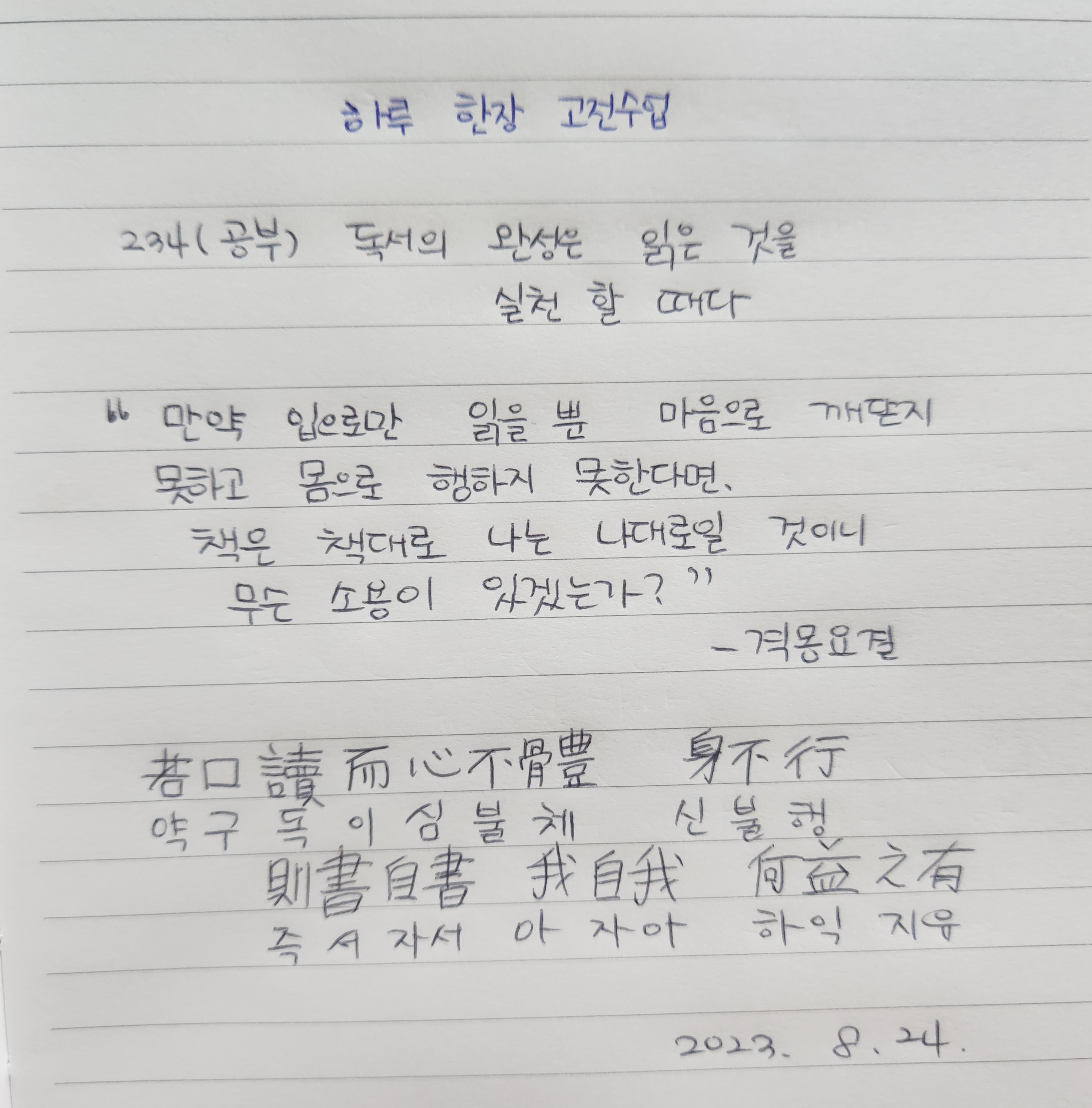 234 (공부) 독서의 완성은 읽은 것을 실천할 때이다
