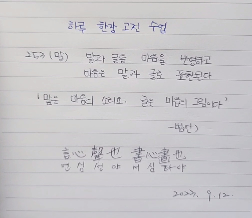 "말은 마음의 소리요, 글은 마음의 그림이다.