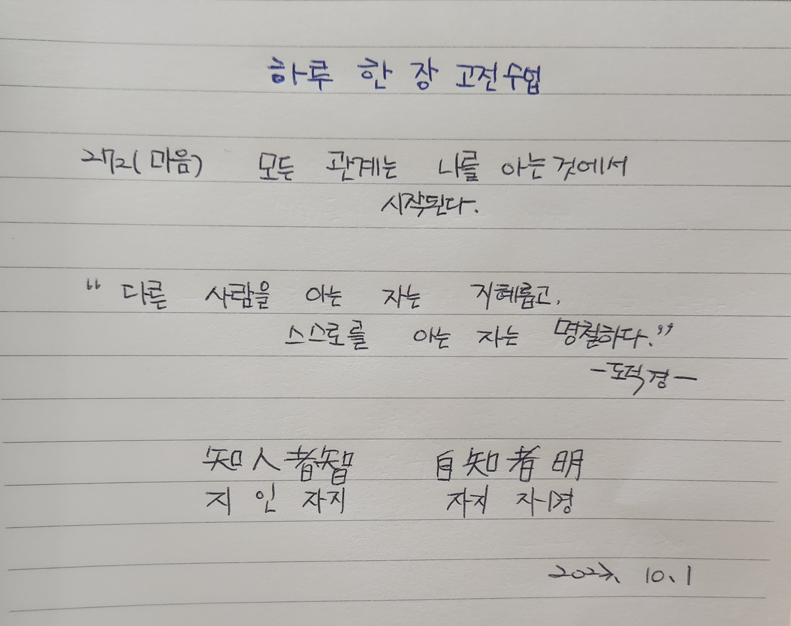 "다른 사람을 아는 자는 지혜롭고, 스스로를 아는 자는 명철하다."